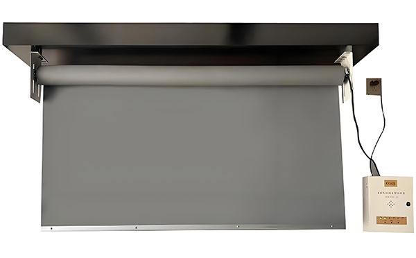 连接电源线和控制线,将托喀依乡挡烟垂壁安装在支架上,并用螺丝固定。
